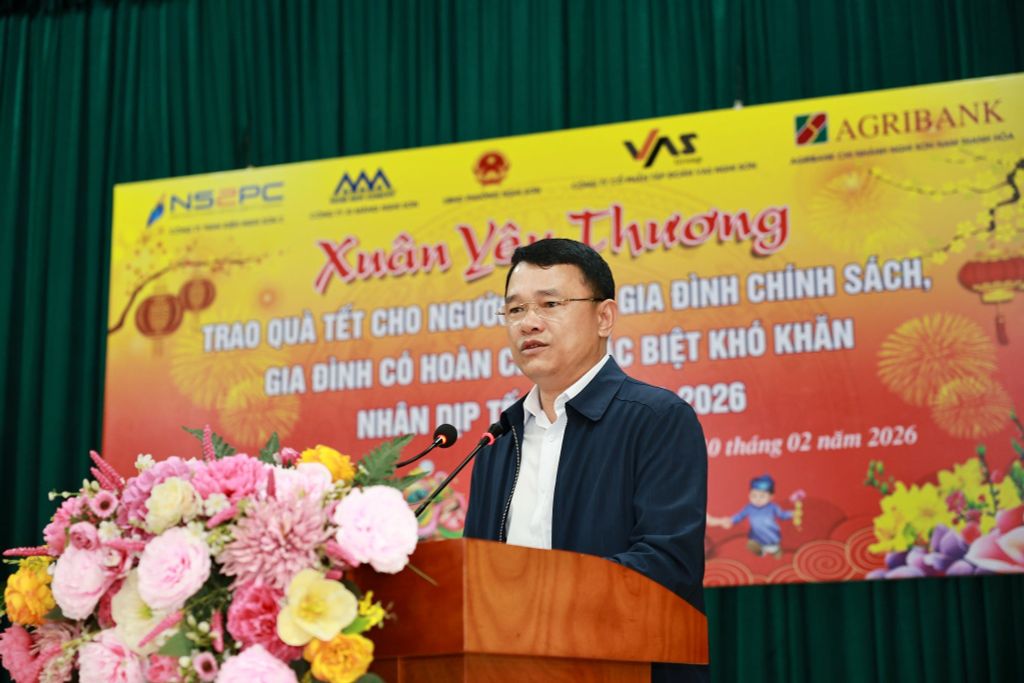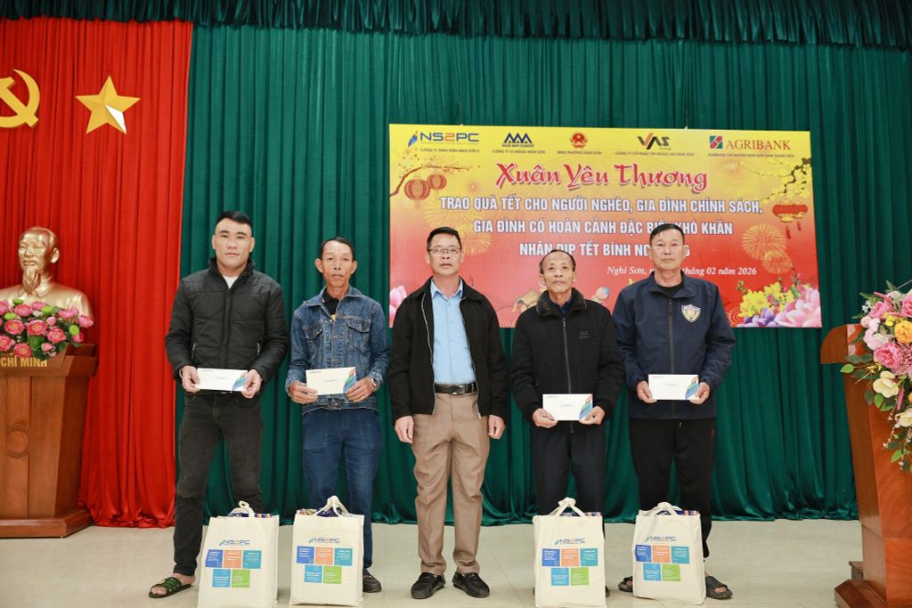 The event was organized by the People’s Committee of Nghi Son Ward, with gifts sponsored by Nghi Son Cement Company, VAS Nghi Son Group Joint Stock Company, Agribank Nghi Son Nam Thanh Hoa Branch, Northern Vegetable Oil Company, Long Mo Minh Tuong Pagoda, and NS2PC. The ceremony took place on February 10, 2026.
